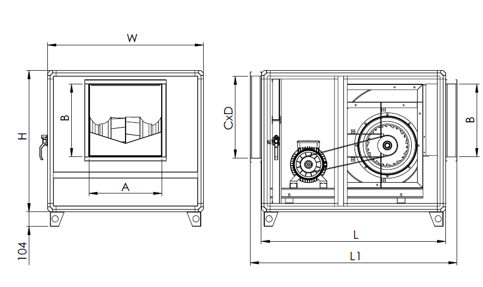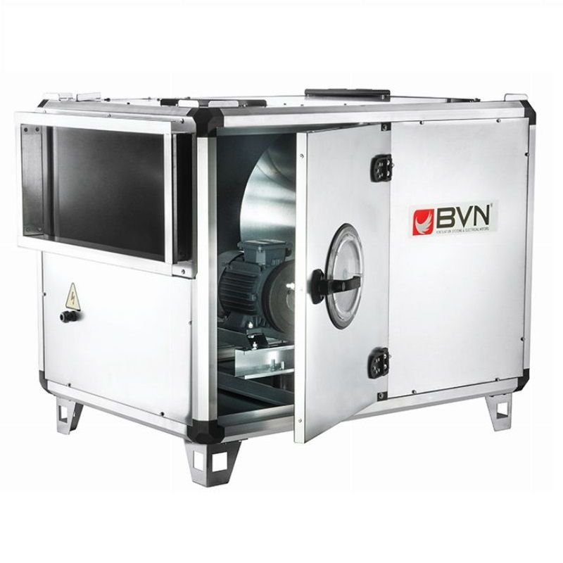 BHV-R çift emişli santrifuj hücreli fan kasası ve fan korozyona karşı dirençli yüksek kaliteli galvaniz çelikten üretilmiştir. Paneller arasına 25 mm taş yünü yerleştirilmiştir. Karkas yapısı alüminyum profilden imal edilmiştir. Asenkron motorlu kayış kasnak tahrikli sistem kullanılır. Cihaz max.40ºC sıcaklığında hava taşıma özelliğine sahiptir.