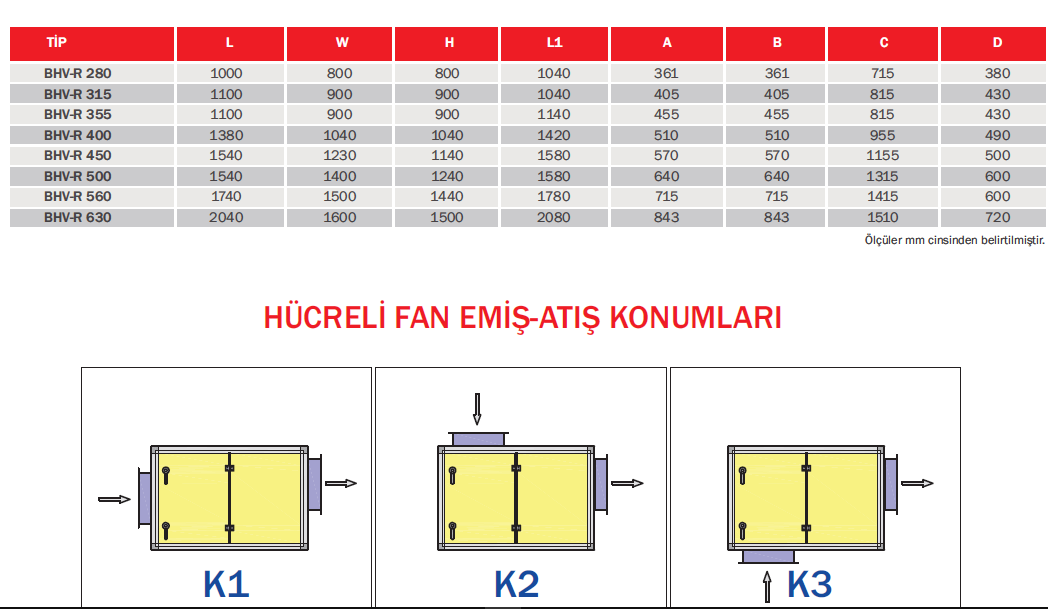 Fan kanatları geriye eğimli ve düzenli akış sağlayacak aerodinamik yapıda üretilir. Fan kaynaklı ve elektrostatik toz boyalıdır.