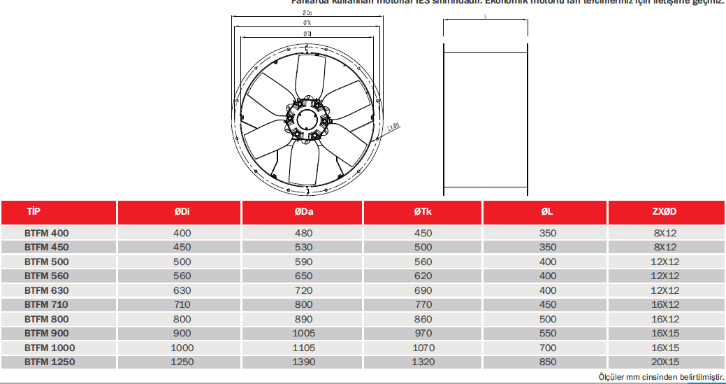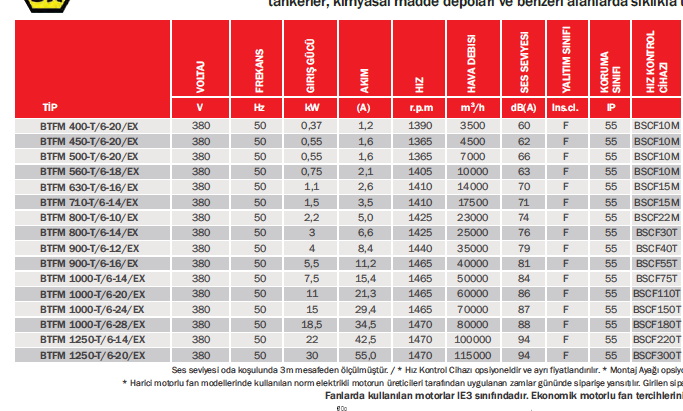 Silindirik tüp kasa airfoil kanat yapısı ve direk akuple motor fanlar 3500 m3/h ile 115.000 m3/h debi ve  Ø400 mm -Ø1250 mm çap seçenekleri sunan 16 modeli  mevcuttur. Gövde elektrostatik toz boyalı olarak çelikten imal edilir. Motor ve fan pervanesi ana gövdeye çelik taşıyıcılarla bağlıdır. Pervane çevresinde gövdeye bağlı olarak sürtünme durumunda kıvılcım önleyici olan alüminyum sac kullanılır. Bütün modellerde asenkron ex-proof motor kullanılmaktadır. Motor hava akımı dışarısındadır. İsteğe göre ayaklı olarak imal edilebilir.