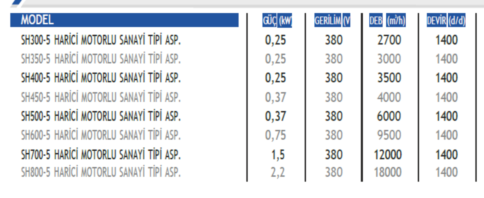• Bu seride iki model bulunur; pervane çapı 250 ile 600 mm arasında değişen SM ve ST 10 çeşittir.