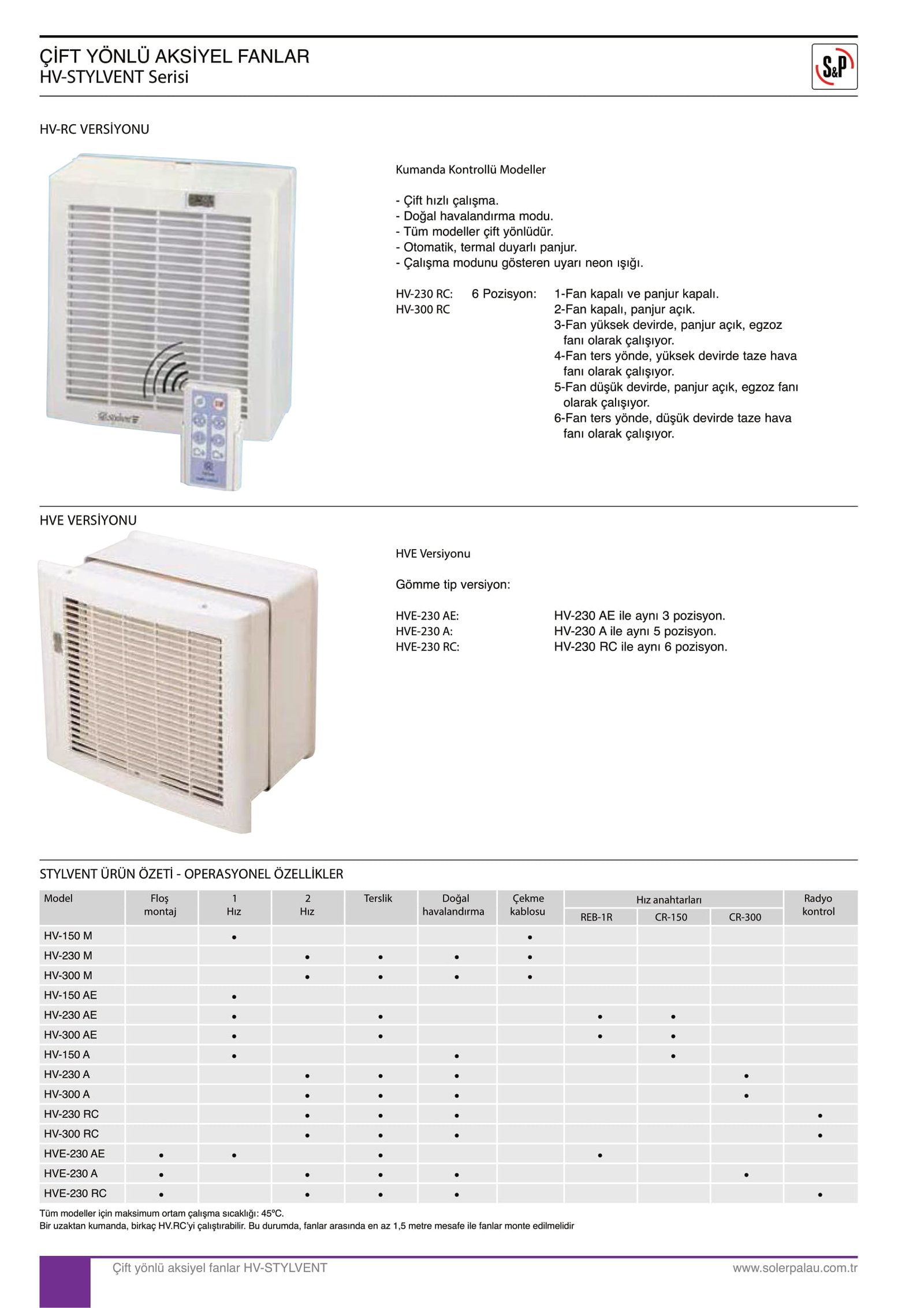 SOLER PALAU S&P HV STYLVENT SERİSİ