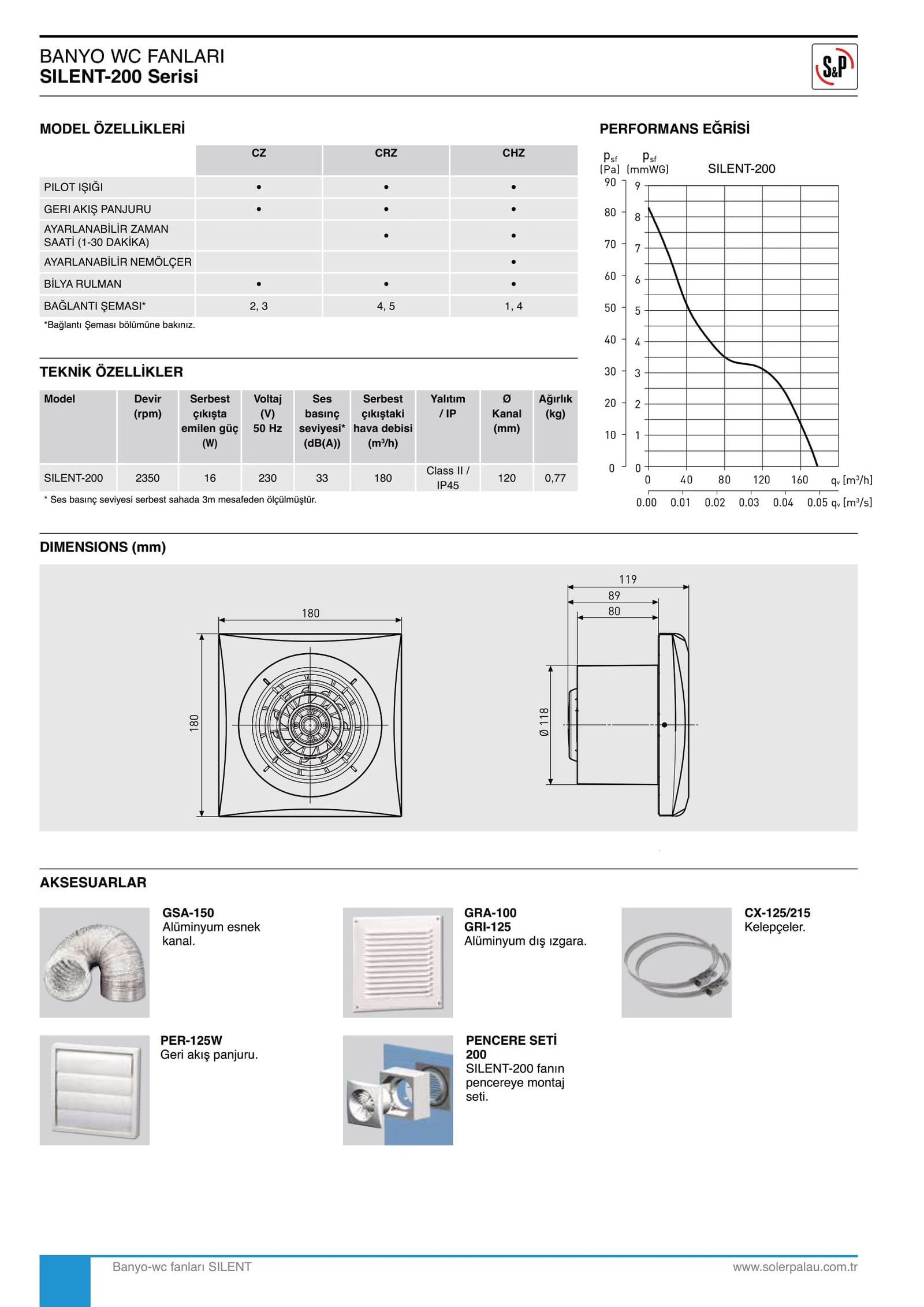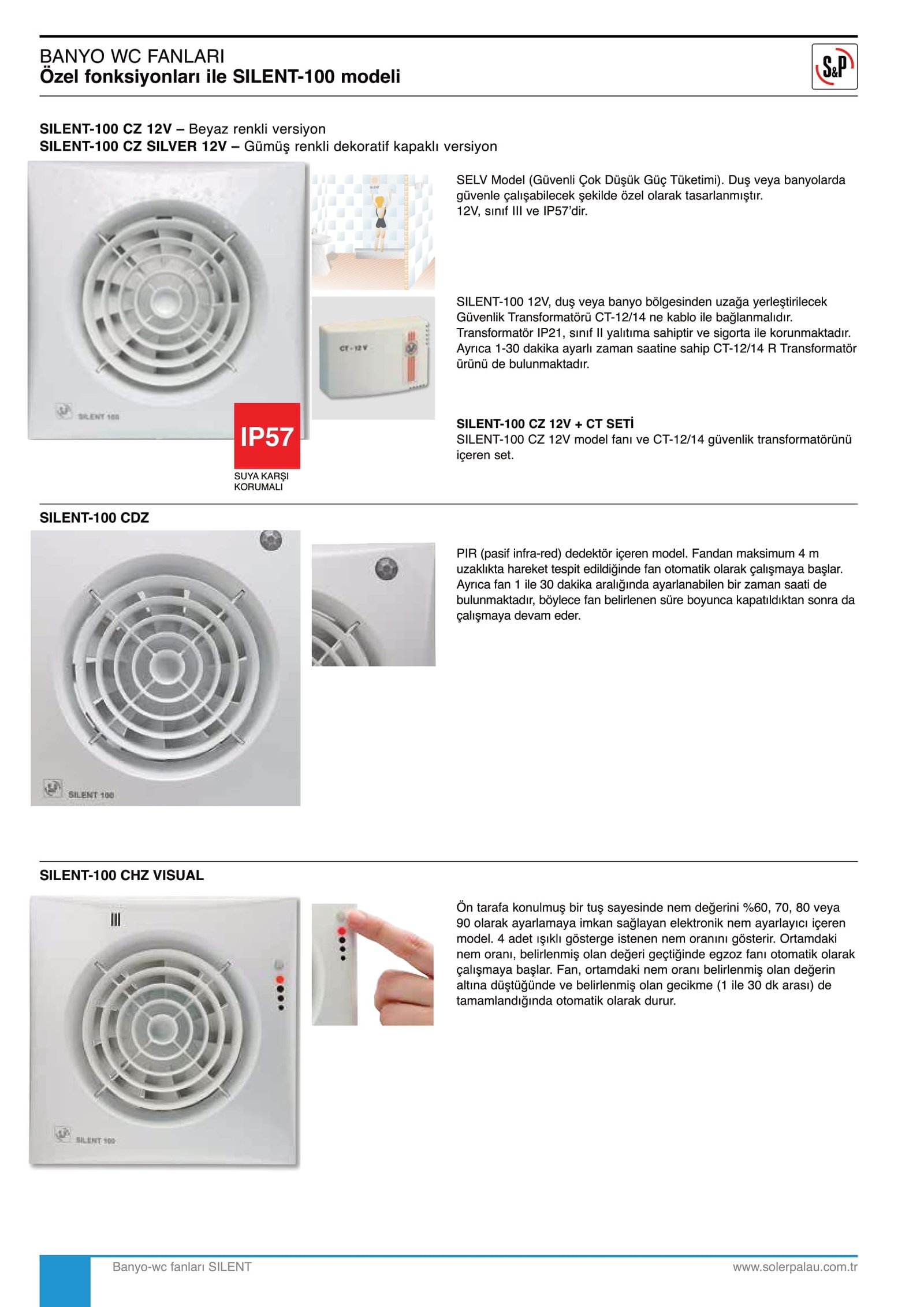 Standart modellerin yanı sıra, Silent serisinin zamanlayıcılı ve nem sensörlü modellerini de tercih edebilirsiniz. Zamanlayıcılı modeller fanın çalışma süresini ayarlamanıza olanak tanır; çalışmaya başlayan fan önceden belirlediğiniz süre kadar çalışır ve kendiliğinden kapanır. Nem sensörlü modeller ise ortamdaki nem seviyesi önceden belirlediğiniz miktarın üzerine çıktığında çalışmaya başlar ve belirlediğiniz süre boyunca çalışmaya devam eder.